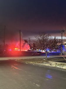 The call came in around 6:48 a.m., reporting a vehicle fully engulfed in flames with fire reaching about 10 feet high.