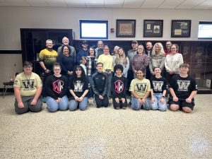 Right: PHOTO CAPTION  Our Community Foundation presented a grant to the Washington High School Band Boosters.  Shown during the grant presentation are (left to right) First Row: WHS Band Members Adrian, Kelsey, Ward, Birdie, Mia, Myrachal, Justin, and Alex; Second Row: Mr. Branden Burris, WHS Band Director; Chasity Matthews, OCF Board; Leighton Wagler, Laurel Wagler, Amanda Qualkenbush, Malin Quakenbush, Carol Nugent, OCF Board; Chris Jarrett, OCF Executive Director; Sara Cockerham, WHS Band Boosters; Back Row: Joe Singleton, OCF Board; Joshua Wagler, Marlin Wagler, Paula Jones, OCF Board; Scott Arthur, OCF Board; Chance Berry, OCF Board VP; and Travis Schaffer, OCF Board President.